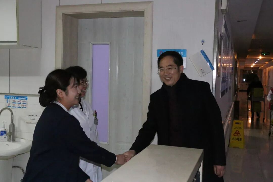 “今天是除夕,给大家拜年!祝大家新春愉快、万事如意、阖家幸福!” 每到一处,院领导都热情地与坚守岗位职工一一握手,向他们致以新春佳节的美好祝愿。